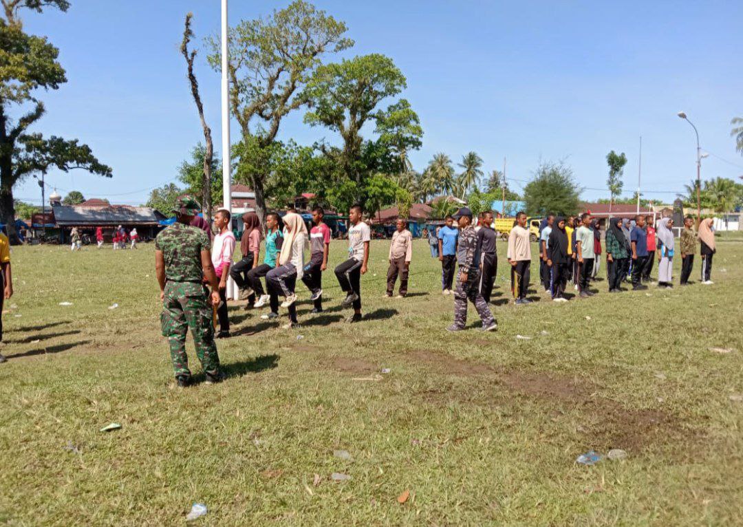 Natal – Dalam rangka menyambut Hari Ulang Tahun (HUT) ke-80 Kemerdekaan Republik Indonesia, Babinsa Koramil 17/Natal Kodim 0212/Tapsel Sertu Prayetno dan Sertu Afrizal bersama tim pelatih lainnya terus mengintensifkan latihan Pasukan Pengibar Bendera (Paskibra) yang terdiri dari para pelajar pilihan di wilayah Kecamatan Natal Kabupaten Mandailing Natal, Sabtu (09/08/2025)