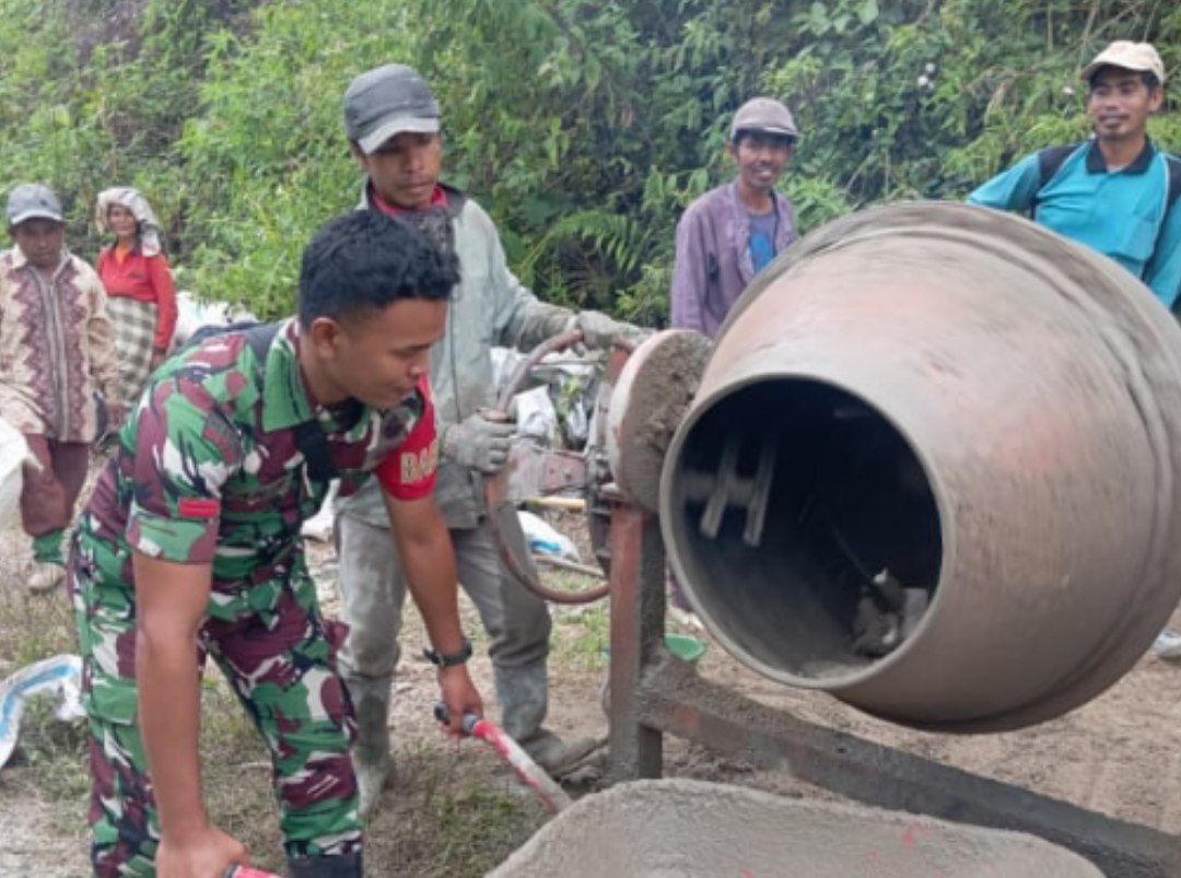 Sebagai seorang Babinsa harus mampu menjadi penggerak dan menjadi teladan bagi masyarakat dalam melaksanakan gotong royong di setiap kegiatan di wilayah. Dalam hal ini Babinsa Pratu Zulhanif bersama warga melaksanaan pekerjaan untuk memperkeras jalan desa di wilayah Binaan, karena akses jalan tersebut sangat penting dan memudahkan pengguna jalan di desa tersebut.