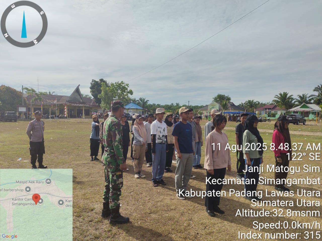“Anggota babinsa bersama bhabinkamtibmas mempersiapkan Paskibra tingkat kecamatan dalam melaksanakan tugasnya memeriahkan HUT RI ke- 80 tingkat Kecamatan Simangambat” terangnya.