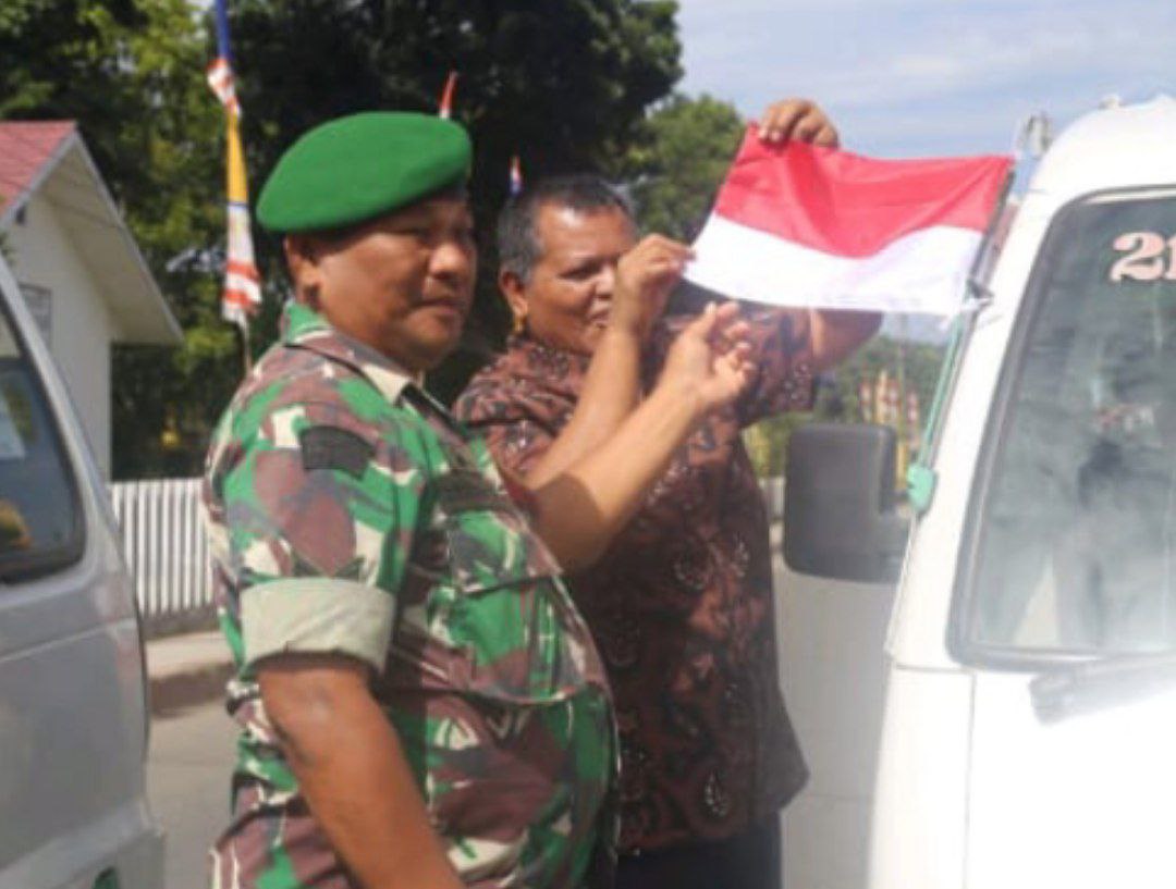 Bendera merah putih berukuran kecil tersebut langsung dipasangkan pada kendaraan roda dua maupun roda empat yang melintas di wilayah tersebut.