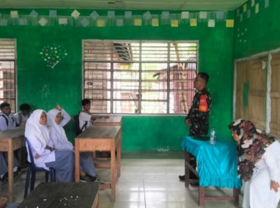 Batahan – Babinsa Koramil 20/Batahan Kodim 0212/Tapsel Serka Edi Marwansyah memberikan arahan dan motivasi/semangat kepada siswa-siswi MA dan MTS NU Batahan Desa Kecamatan Batahan Kabupaten Mandailing Natal, Senin (01/09/2025)