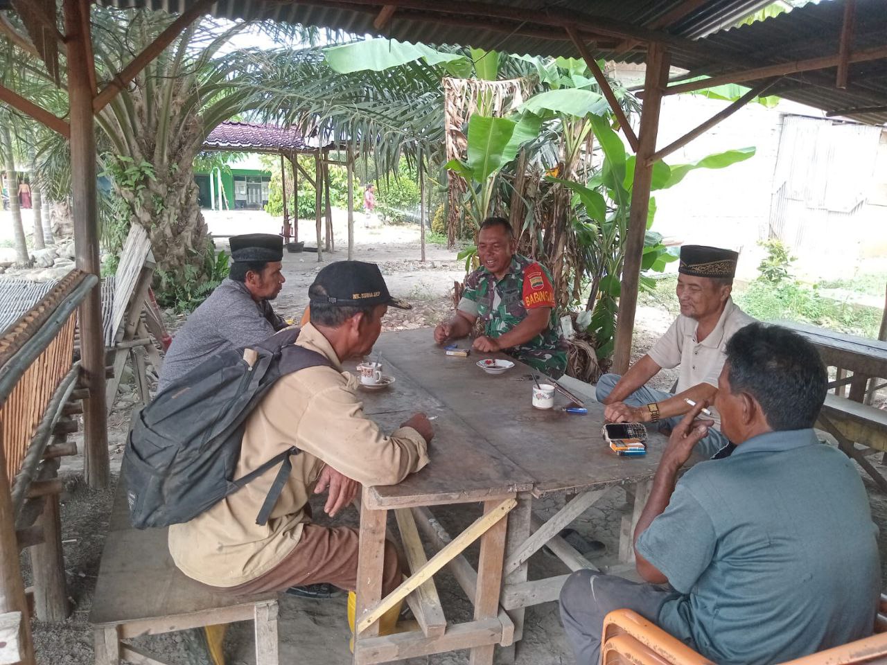 Babinsa juga memanfaatkan kesempatan tersebut untuk meningkatkan kerjasama bersama Perangkat desa, dengan maksud mengajak seluruh perangkat desa dan tokoh masyarakat untuk bersama-sama menggugah kesadaran masyarakat agar menjaga desa kita tetap kondusif