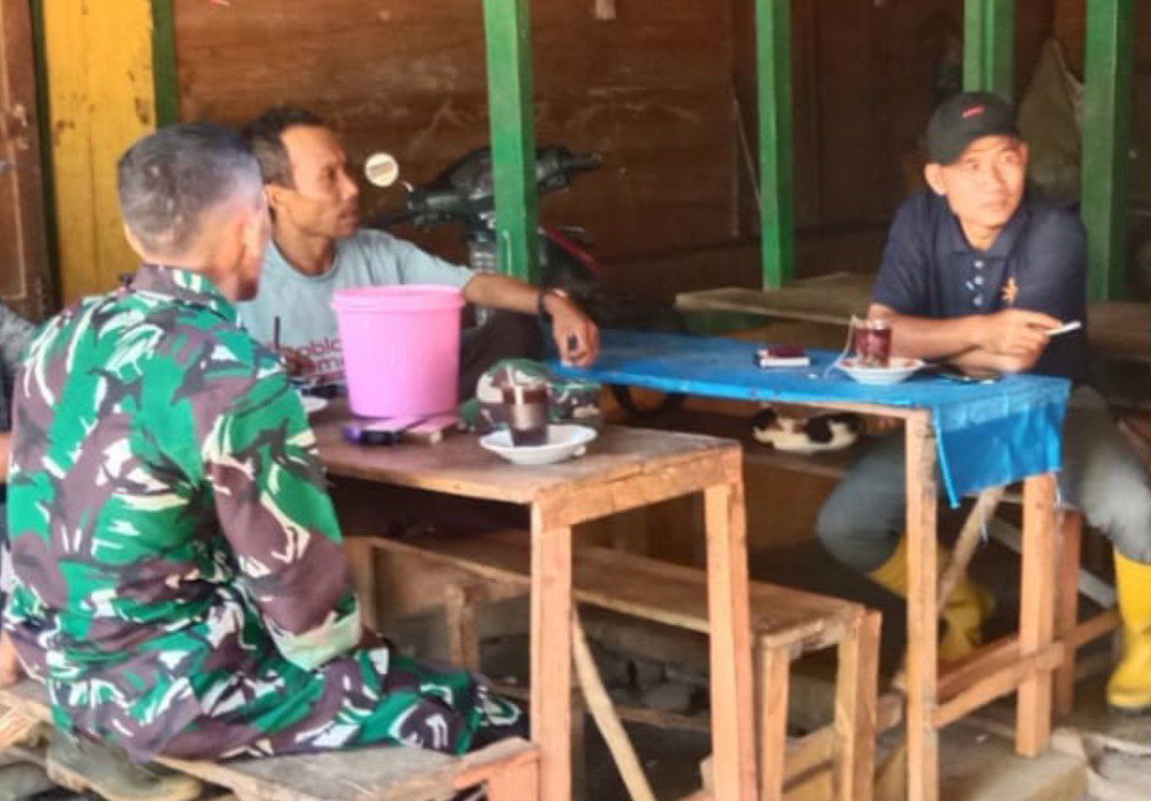 Dalam Komsosnya, Babinsa Serda Adi Sucipto berkumpul dan berbincang dengan warga membahas tentang situasi keamanan di lingkungan desa Simpang Koje