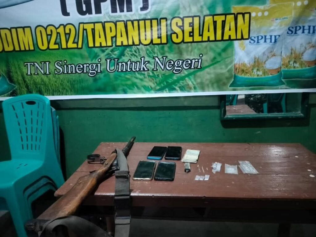 Padangsidimpuan – Kodim 0212/Tapsel melalui anggota Unit Intel melakukan penangkapan terhadap satu orang yang diduga bandar narkoba jenis sabu-sabu dan satu orang yang diduga sebagai pengedar narkoba yang sebelumnya menerima informasi dari masyarakat tentang maraknya transaksi Narkoba di salah satu kebun milik warga Sdr Sitorus di Areal Seribu Kec. Barumun Tengah Kab. Padang Lawas (Palas), Senin (17/11/2025)