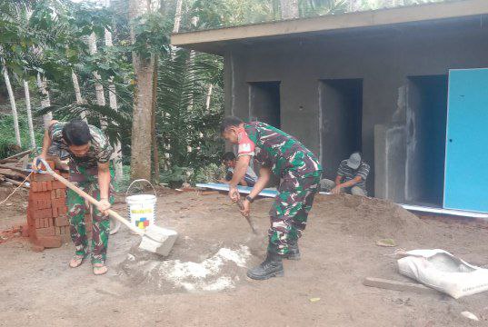 Babinsa Serka Muhammad Ali, pihaknya beberapa hari ini terus mengebut pengerjaan Failitas MCK bagi para warga yang terdampak bencana banjir