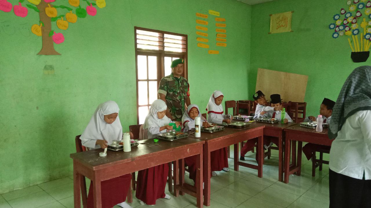 Babinsa juga menyampaikan, bahwa pendampingan ini bertujuan memastikan kelancaran pembagian makanan sekaligus memberikan edukasi kepada para siswa mengenai pentingnya pola makan sehat.