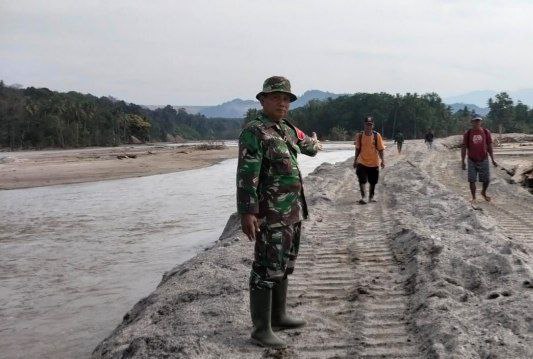 Batang Toru – Babinsa Koramil 01/Batang Toru Kodim 0212/Tapsel Sertu Nelwan Pane melaksanakan pendampingan normalisasi Sungai Batang Toru pasca bencana banjir bandang di desa Hapesong Baru dan Desa Telo Kecamatan Batang Toru Kabupaten Tapanuli Selatan, Rabu (04/02/2026)
