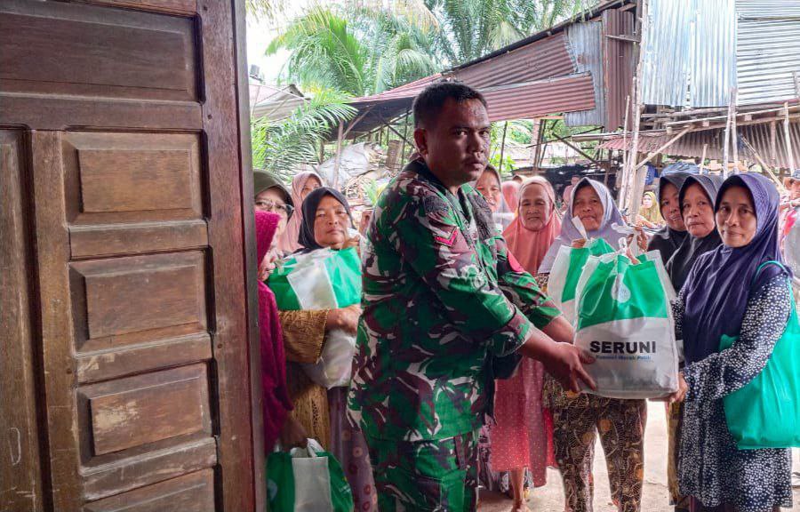 Batang Toru – Babinsa Koramil 01/Batang Toru Kodim 0212/Tapsel Kopda Rolan Sibaarani mendampingi dan membantu penyaluran bantuan paket sembako kepada warga masyarakat di Desa Garoga Kecamatan Batang Toru Kabupaten Tapanuli Selatann, Sabtu (14/02/2026)
