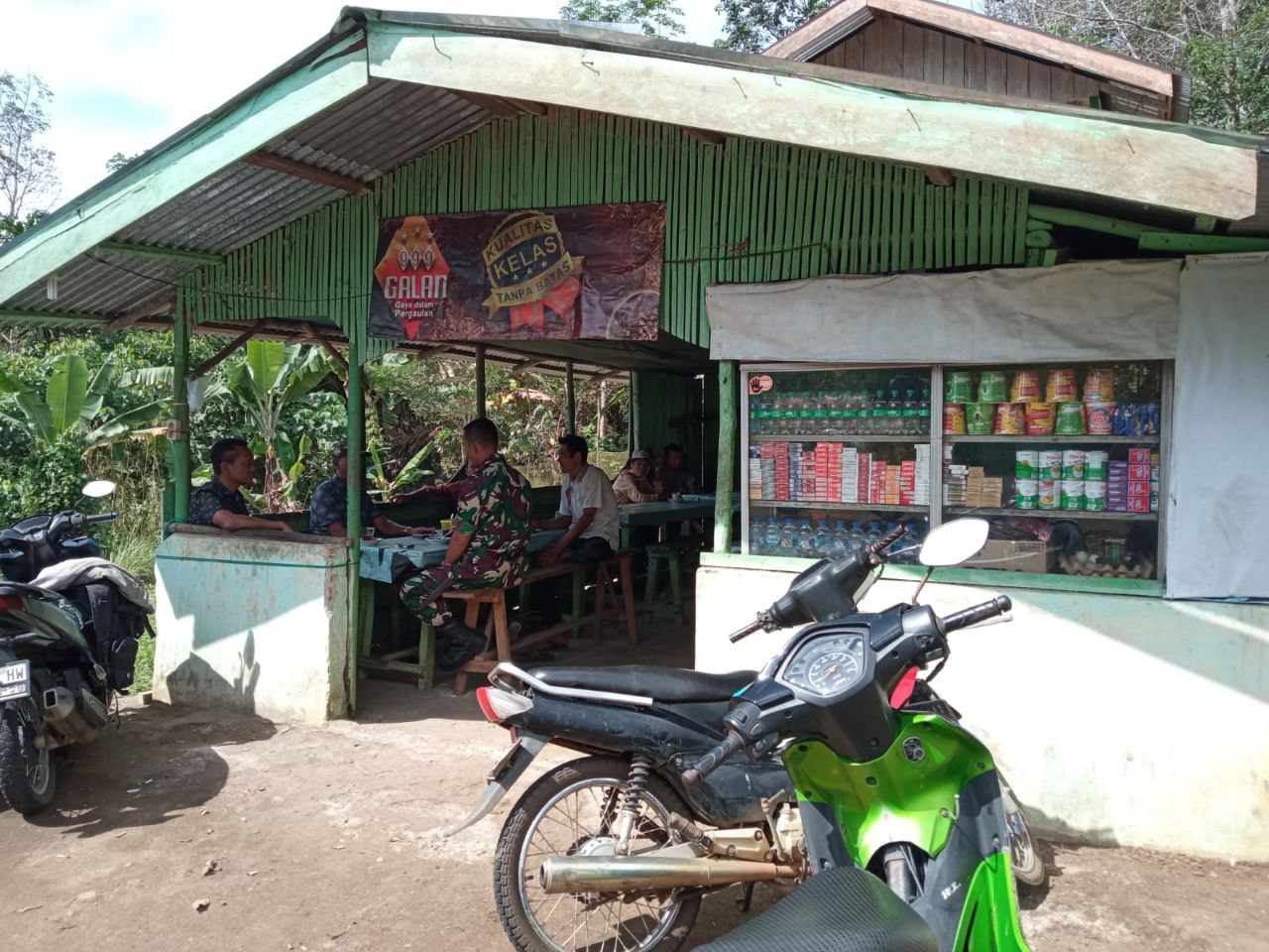 Arse – Babinsa Koramil 03/Sipirok Kodim 0212/Tapsel Sertu Ali Anhar Siagian melaksanakan monitor wilayah dan Komunikasi Sosial (Komsos) dengan warga desa binaan singgah di salah satu warung kopi Desa Arse Nauli Kecamatan Arse Kabupaten Tapanuli Selatan, Senin (16/02/2026)